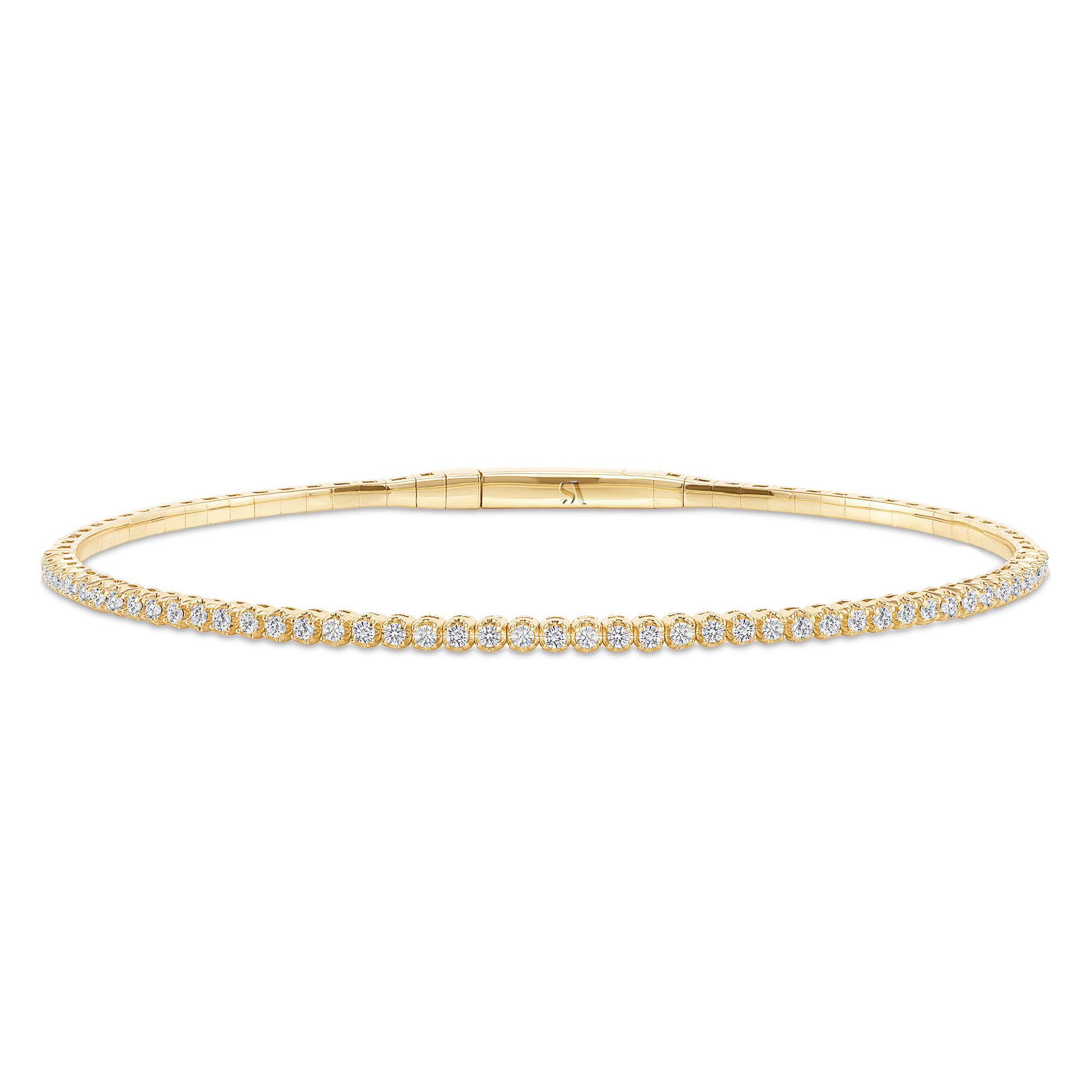 LADIES HALF FLEXIBLE BANGLE 1.00CT ROUND DIAMOND 14K YELLOW GOLD