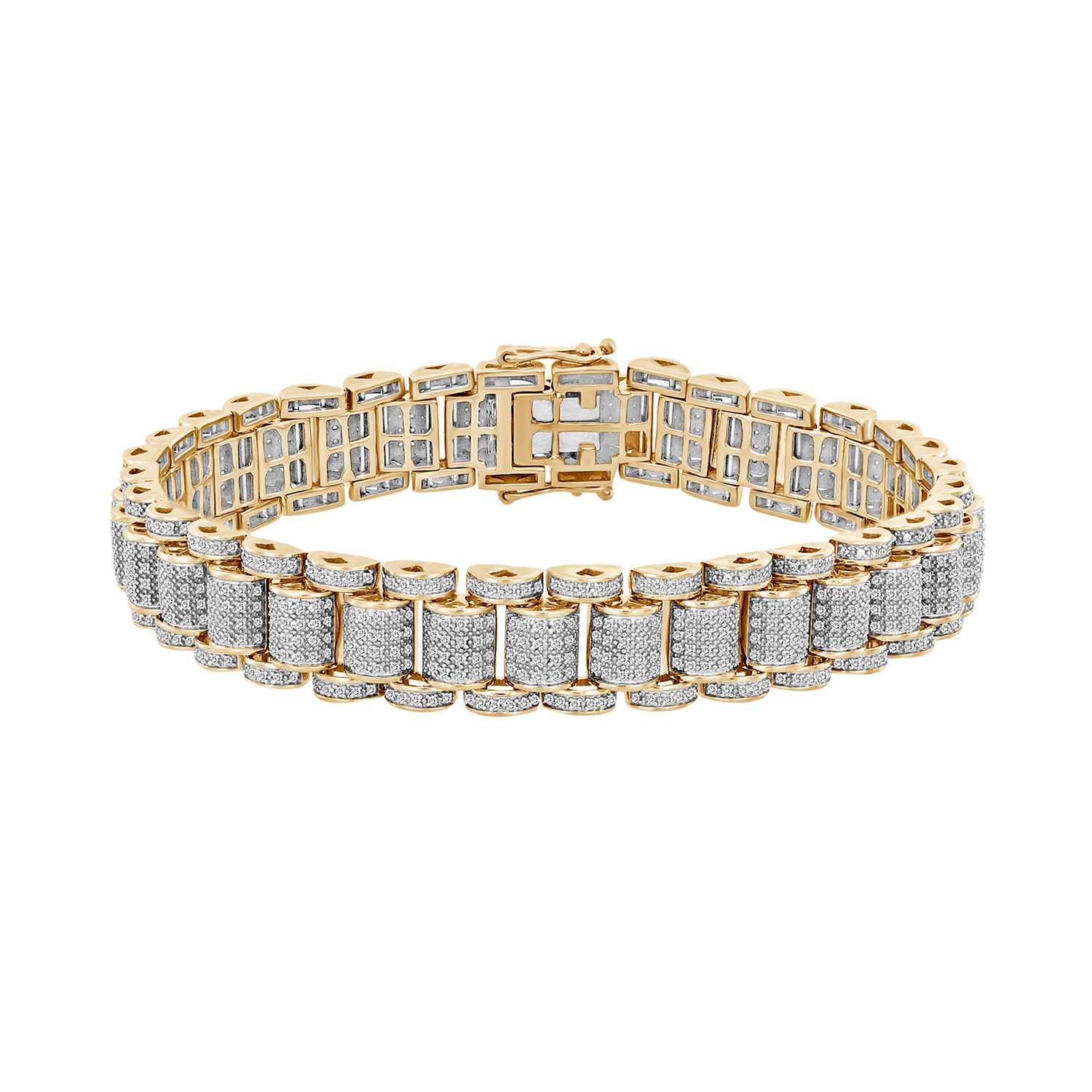 MEN’S BRACELET 3.00CT ROUND DIAMOND 10K YELLOW GOLD